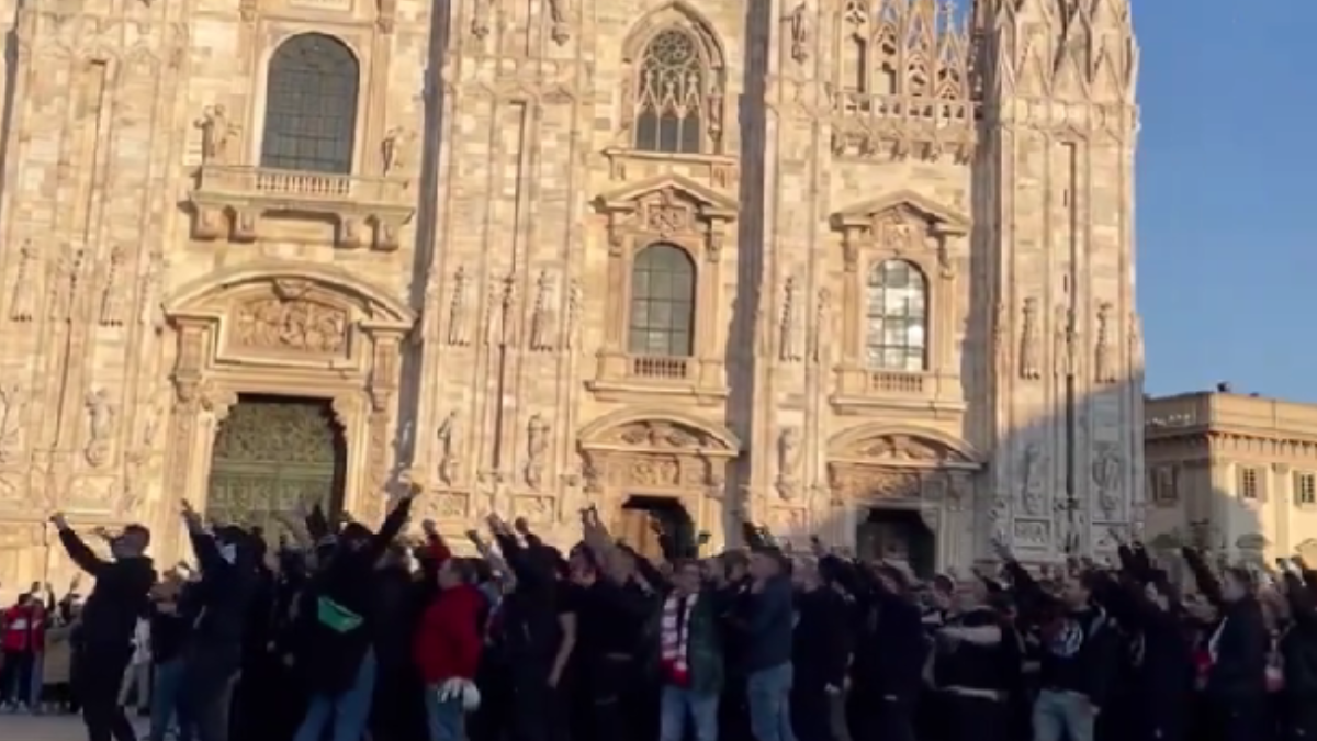 Lo Slavia Praga ha postato sui social un video dei suoi sostenitori davanti al Duomo e l’ha intitolato “Milano è biancorossa”.