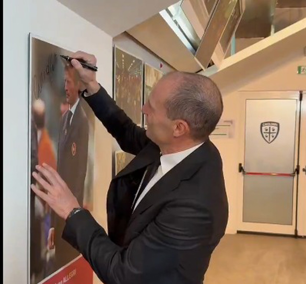 Durante il riscaldamento pre-gara, Massimiliano Allegri ha firmato la sua foto installata nel percorso museale dell’Unipol Domus, presente nella sezione dedicata agli allenatori che hanno lasciato il segno nella storia del Club: “Con affetto e grazie di tutto”, la sua dedica – così il Cagliari.