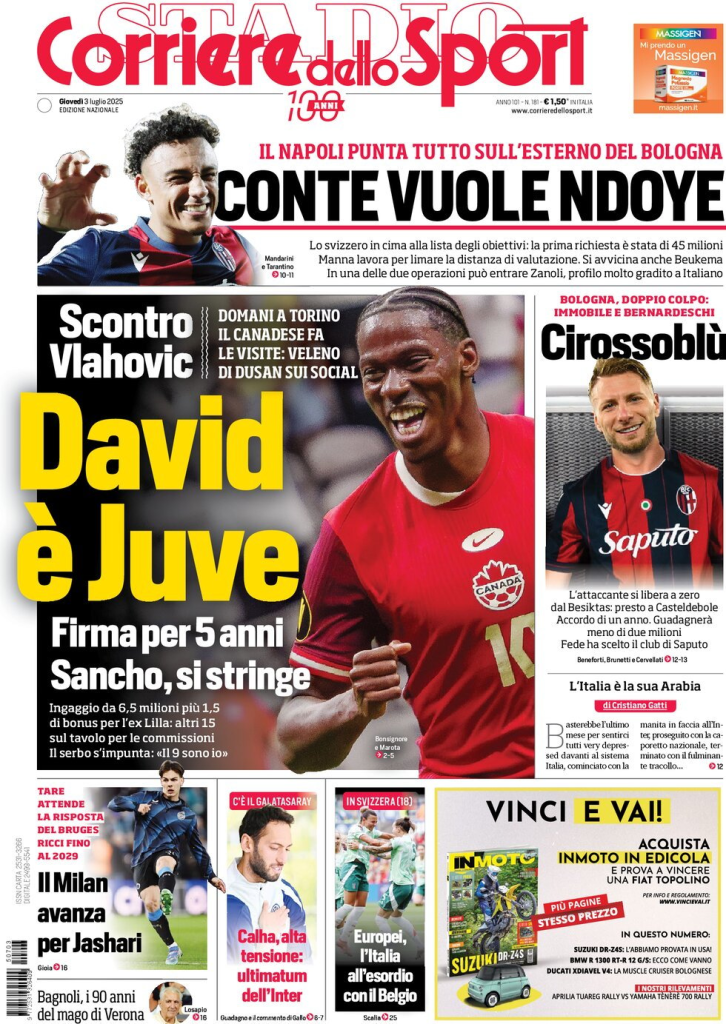Prime pagine quotidiani sportivi - 3 luglio 2025